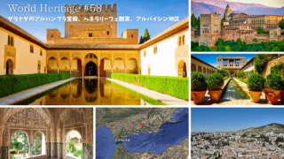 グラナダのアルハンブラ宮殿、ヘネラリーフェ離宮、アルバイシン地区(スペイン・世界遺産登録年 1984年)イベリア半島が711年にイスラムの勢力下に入ったことにより、キリスト教勢力はレコンキスタ(再征服運動)を始め、戦いが各地で繰り広げられる...